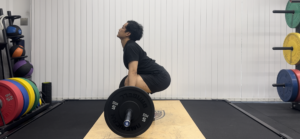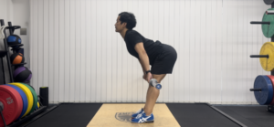 下降局面にて、ハムストリング起始部のストレッチをしっかりと感じ取れている場合は、可動域が狭くても問題ないので、腰や背中が丸くなる手前で動作を切り替えましょう。